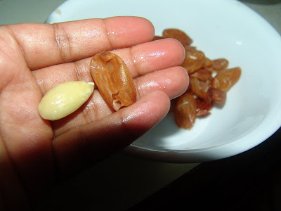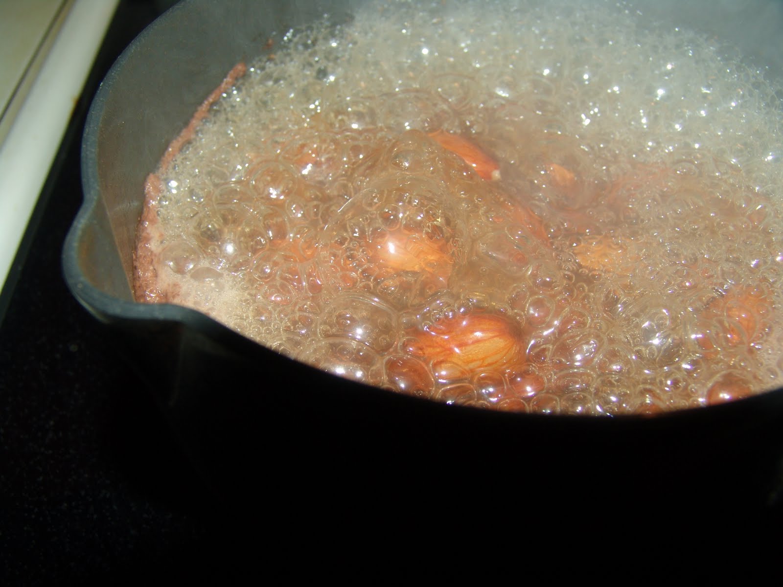 1. Blanch the almonds by boiling them for a few minutes until skins are loosened
