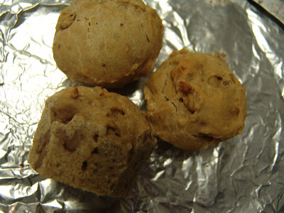 3. pour into greased muffin cups (in the picture I did not grease the cups so the sides stuck and they are cut off)