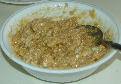 6. spread cashew filling on top of entire first layer of banana bread batter