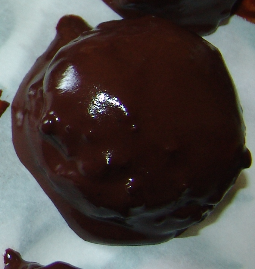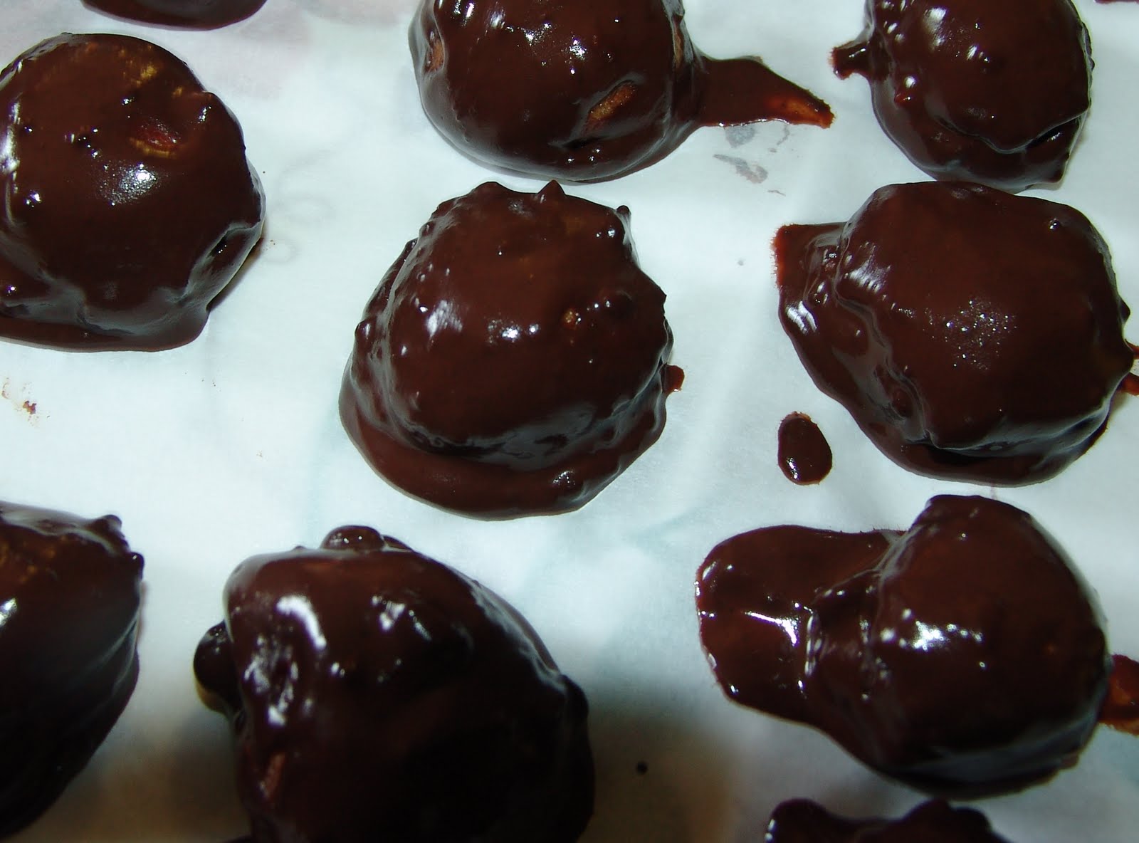 7. dip in chocolate covering and place on parchment/wax paper until cool