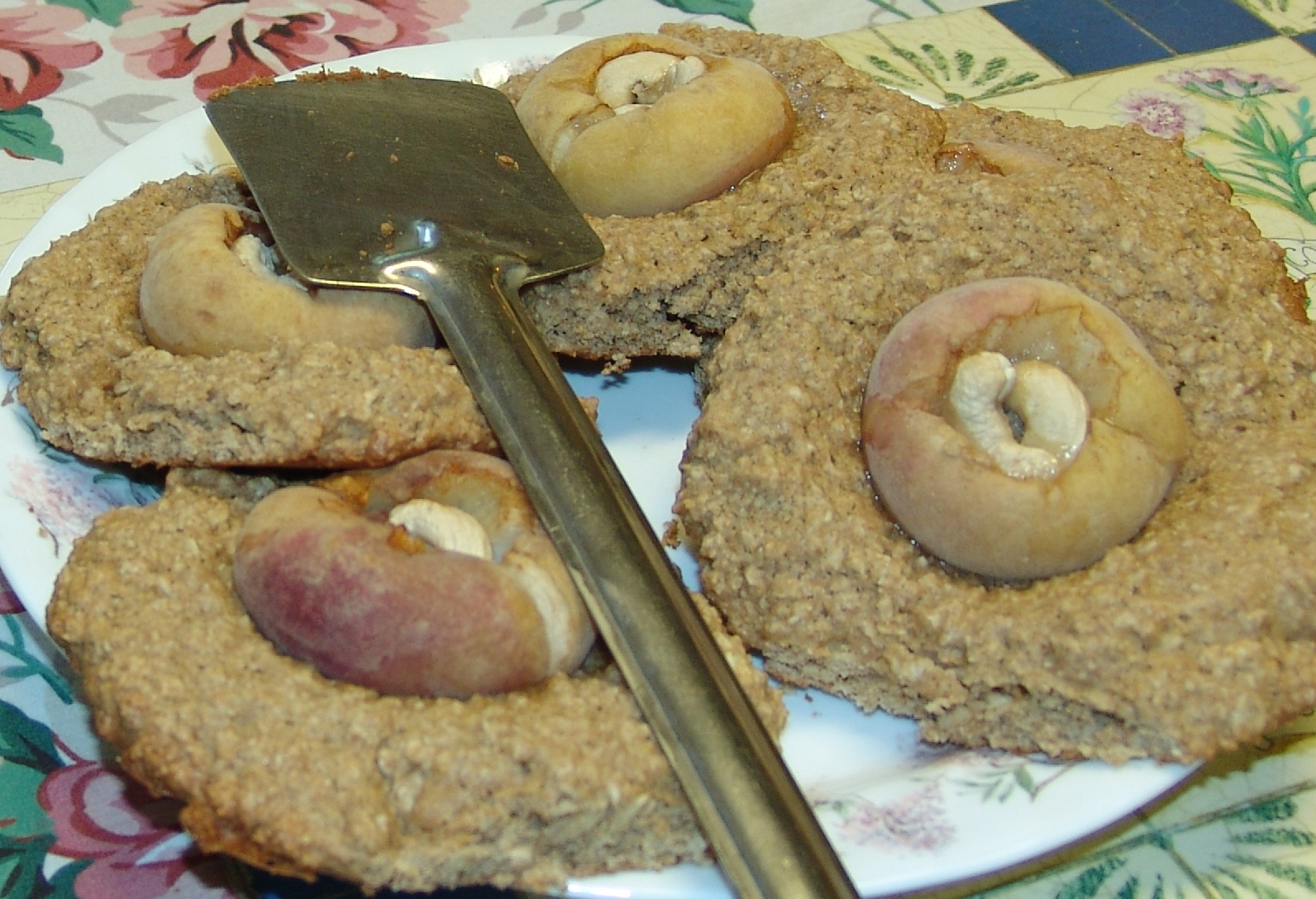 5. fill the core of the donut peach for 2 cashews to form a circle