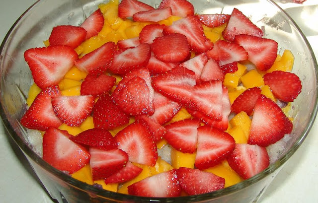 2. layer the fruit and creams in the order of your preference