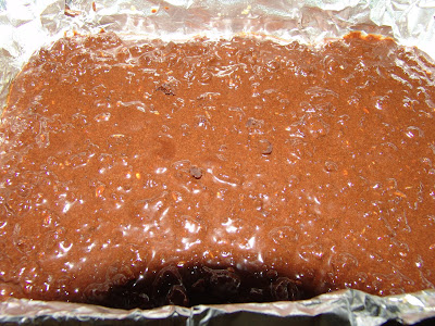 3. pour the bar ingredients onto the bottom of an olive oil-sprayed foil-lined cake pan