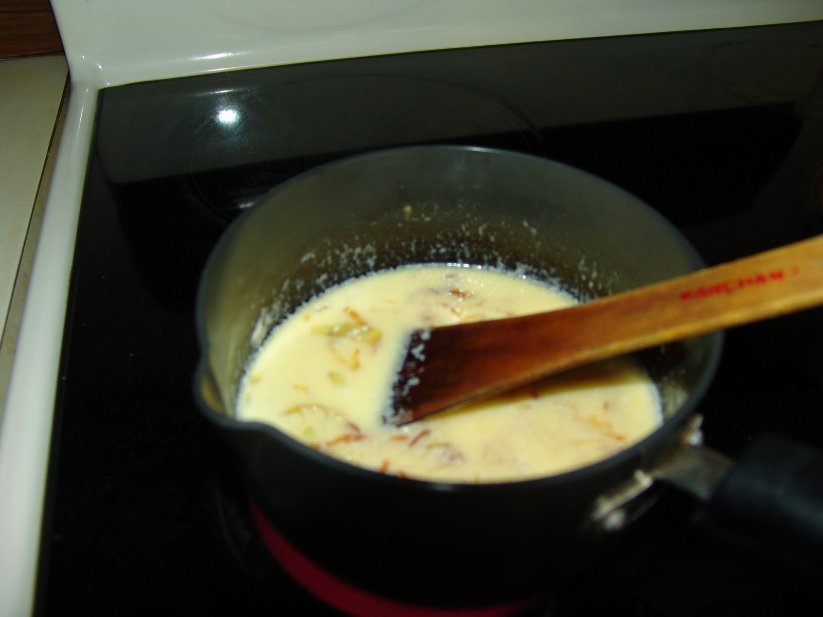 2. add the cream, milk, and salt and bring to a boil; set aside