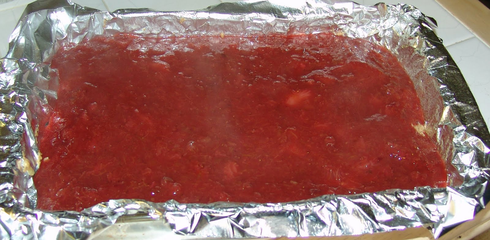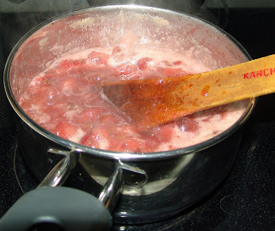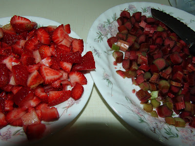 1. cook the strawberry rhubarb layer ingredients until fruit is soft (like apple sauce)