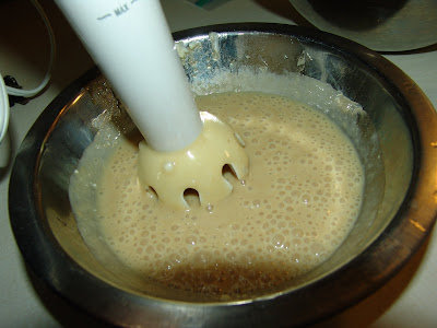 3. use a hand blender to blend the banana cream layer ingredients