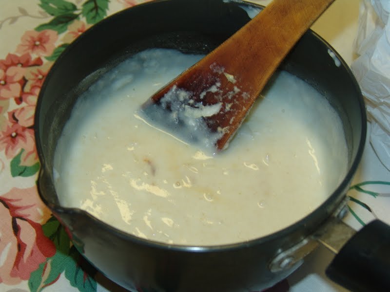 1. mix flour in a few tbsps of milk in a small cup to dissolve flour; add to the rest of the milk, salt , and onions and bring to a boil so that white sauce thickens