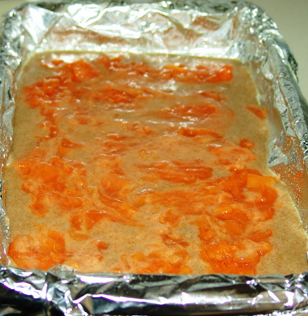 6. spread the apricot topping on top of the cake batter