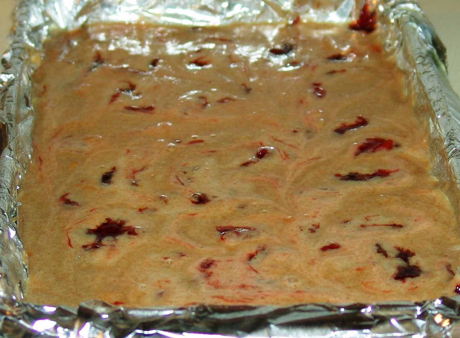 8. spread the strawberry topping on top of the second layer of cake batter