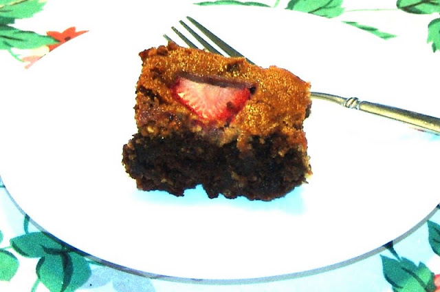1. blend together chocolate layer ingredients and spread onto the bottom of a large olive-oil sprayed cake pan