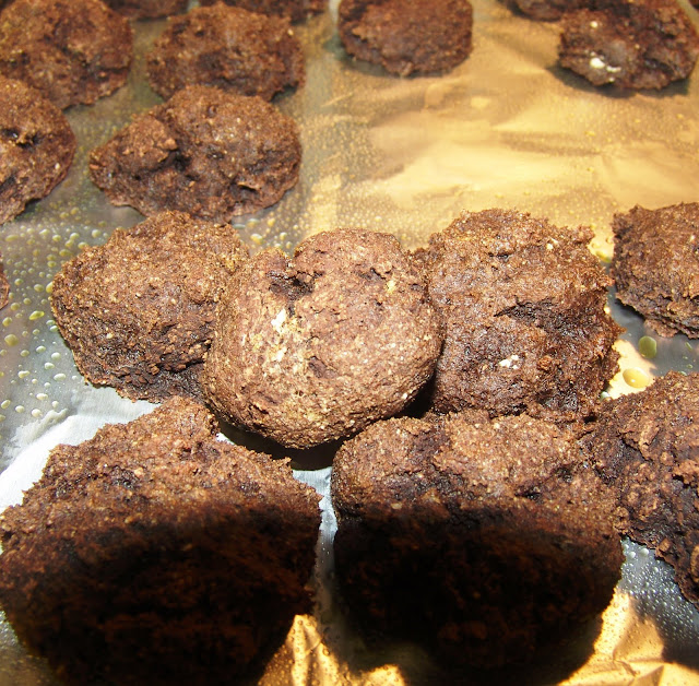 3. drop by heaping tablespoonfuls onto an olive oil-sprayed foil-lined tray