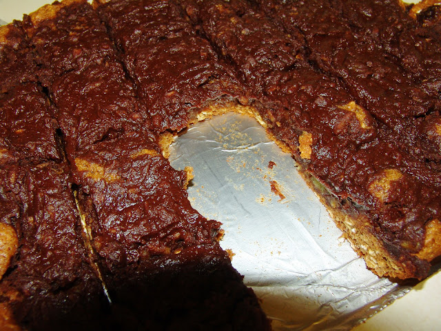 4. mix together the chocolate layer ingredients and pour on top of the crust batter