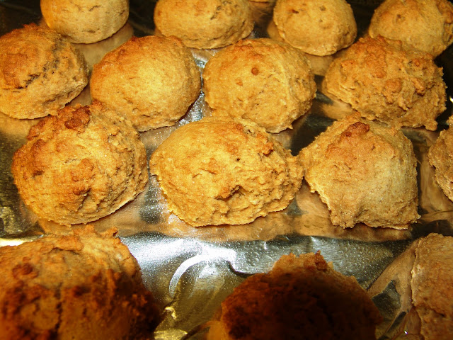 3. drop in heaping tablespoons onto an olive oil-sprayed foil-lined tray
