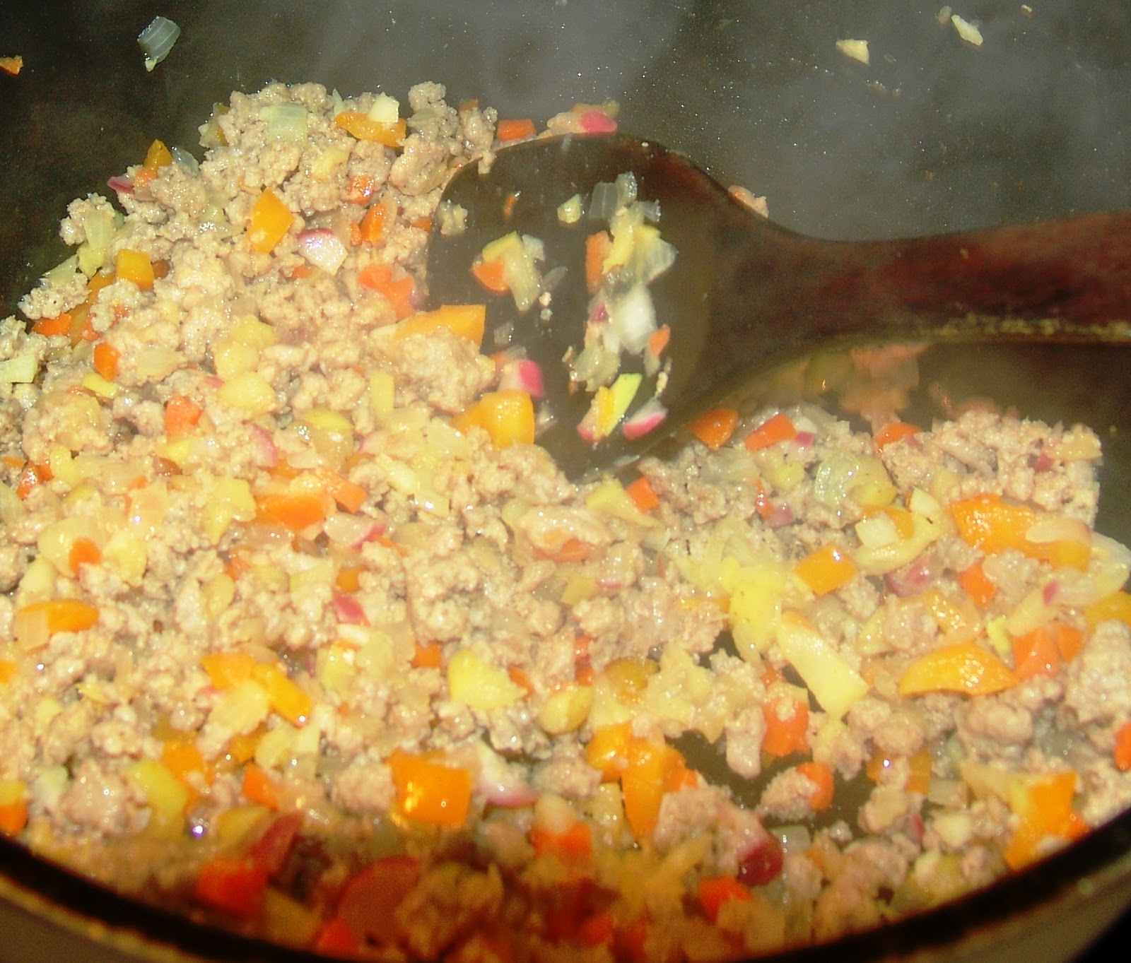 1. brown the turkey, salt, pepper, and curry powder