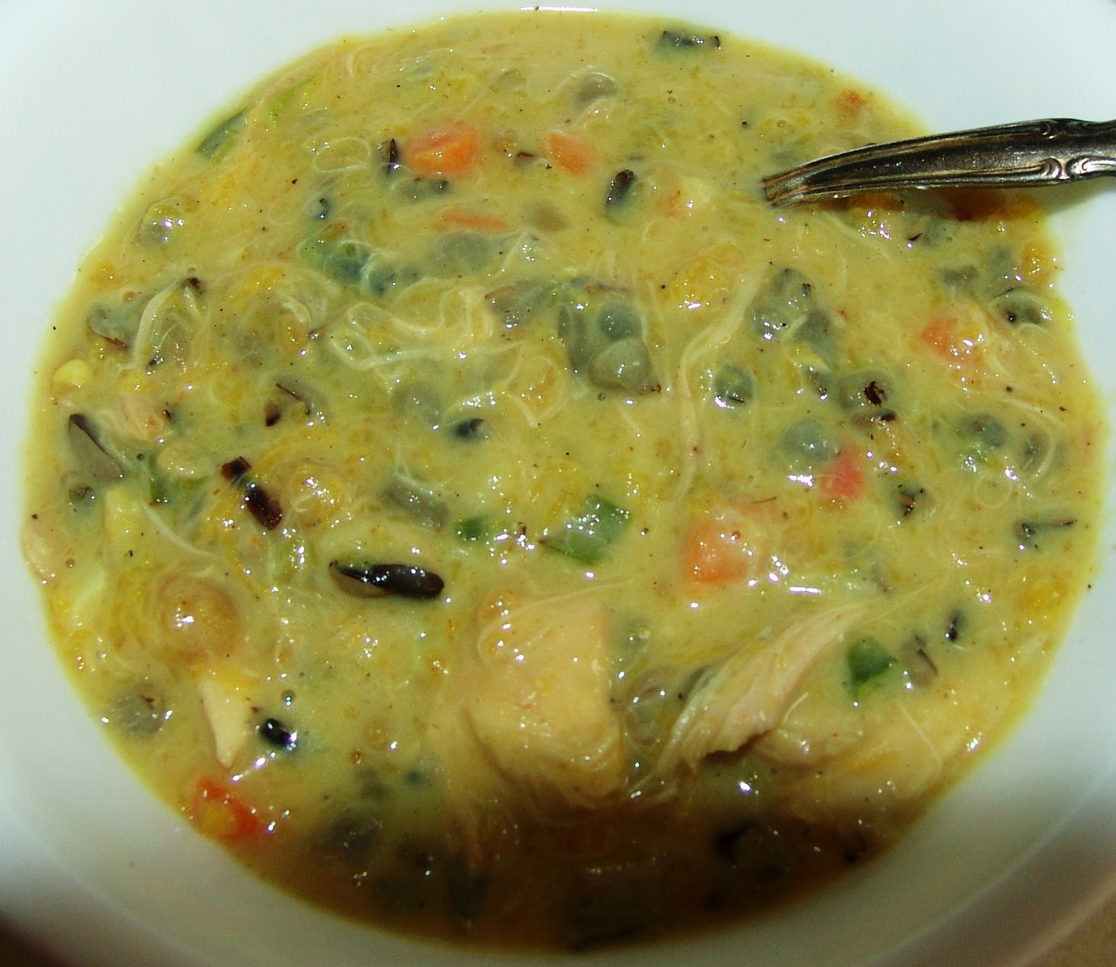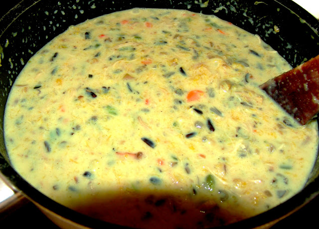 3. add the squash, half & half, milk, rice (with broth), and chicken