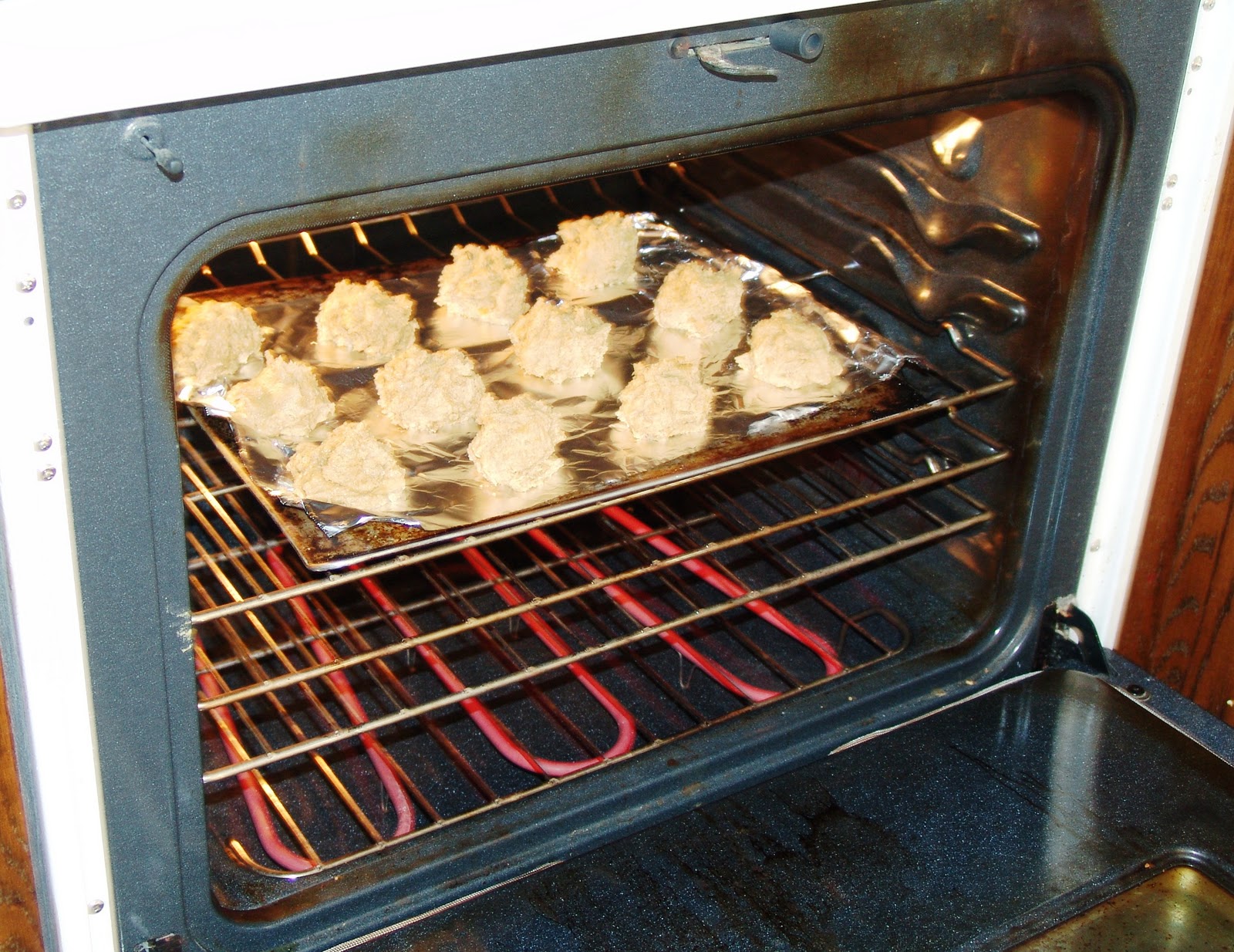 3. drop by heaping tbspfuls onto a foil-lined pan