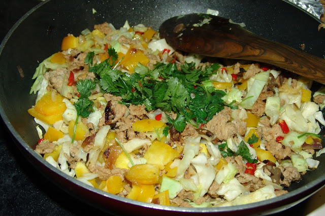 2. add the ginger and garlic and fry until these two are almost burned as well